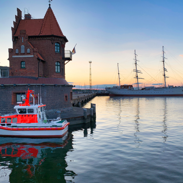 Der Stadthafen gehört zu den Orten in Rostock, an denen man das maritime Lebensgefühl der Stadt besonders gut spürt. Entlang der Warnow reihen sich Promenade, Schiffe, Restaurants, Bars und Spazierwege aneinander, sodass sich der Bereich sowohl tagsüber als auch am Abend wunderbar erkunden lässt. Hier kannst du gemütlich am Wasser entlanglaufen, den Blick über den Fluss schweifen lassen und Rostock dabei von seiner lockeren, offenen Seite erleben. Gerade wenn die Sonne tief steht und sich die Lichter im Wasser spiegeln, versteht man schnell, warum man in Hafenstädten gern ein bisschen länger hängen bleibt als geplant.